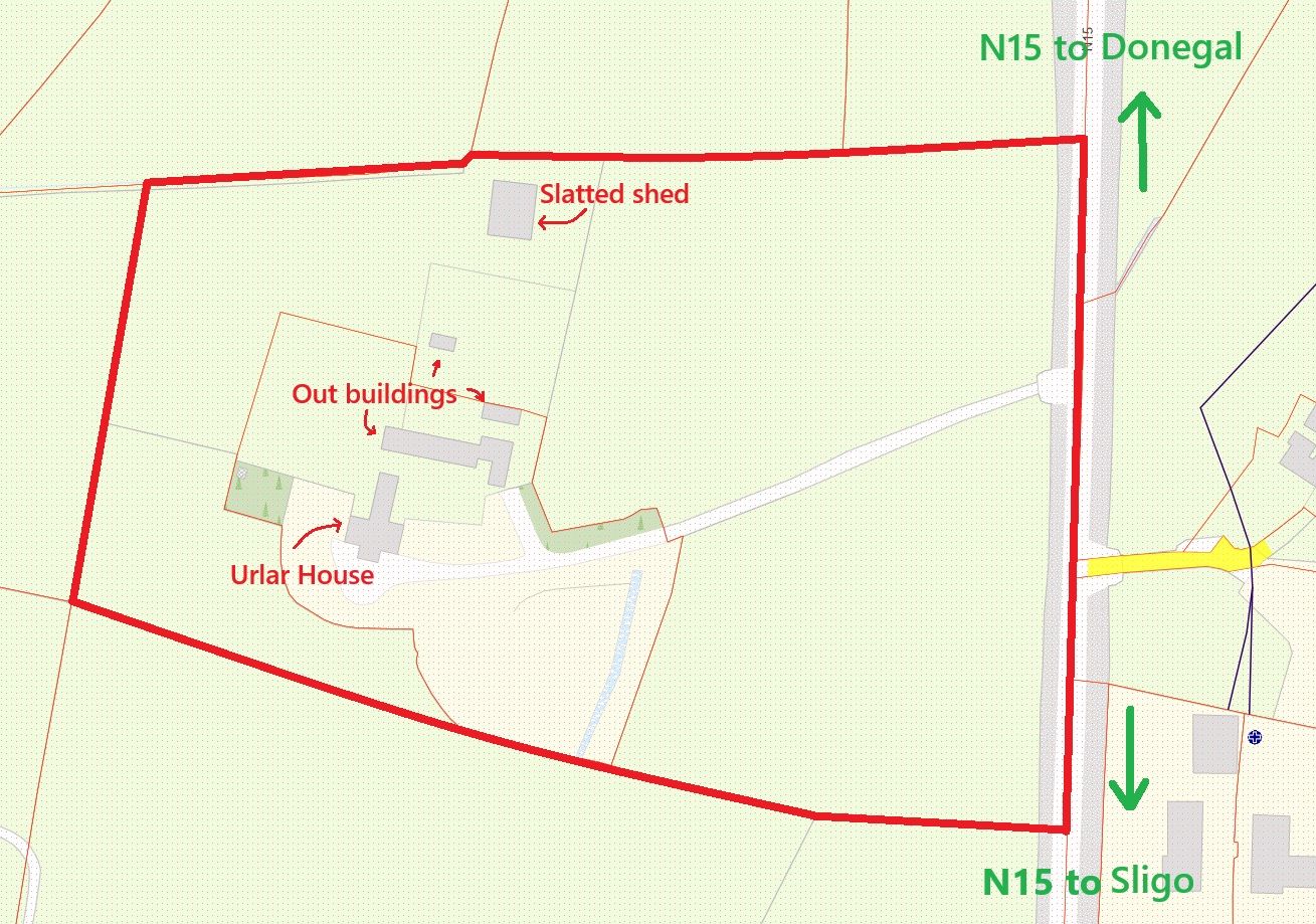 The land is of good quality, all in one square block, fronting the N15, and has potential for small holding to compliment the residence. Urlar House is a listed building in the National Records. Renovation works had commenced approx 15 years ago, but were never completed, and the residence now lies semi-derelict. It has a beautiful south-facing aspect and, with time and money, could be restored to its former glory. The house originally extended to approx 200m² over two floors and, up to about 25 years ago, had been used as a guest house. The house is thought to have been built in the 1840's/50's.